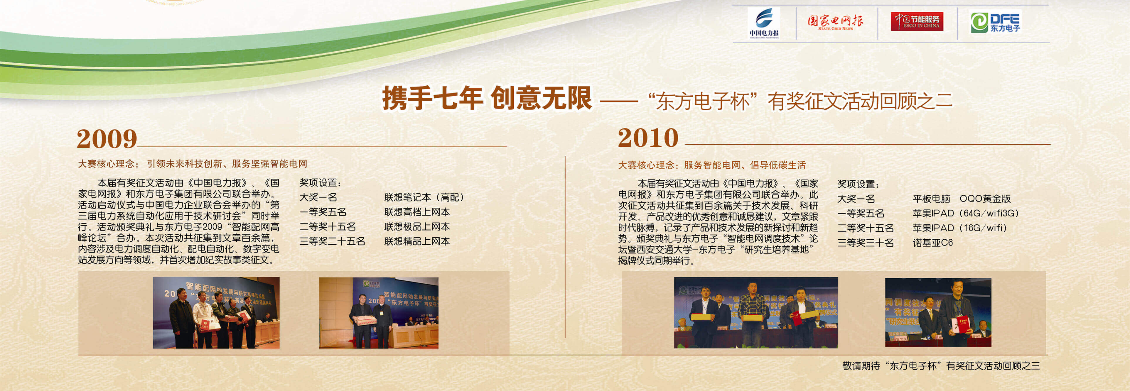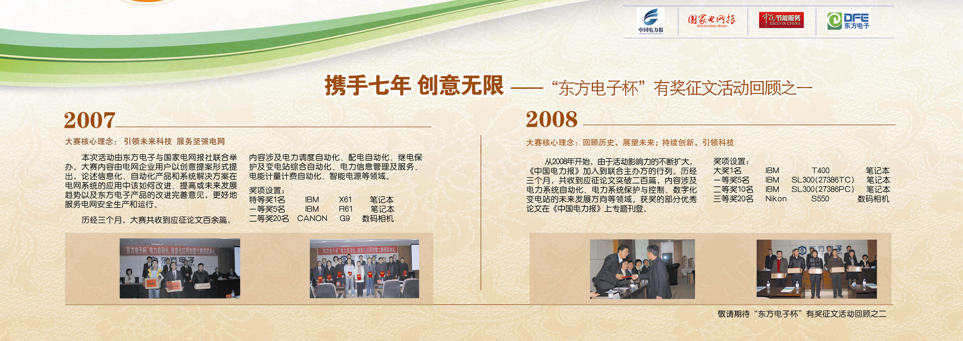 2007年至今,由上海屹奕标准件制造有限公司联合《中国电力报》、《国家电网报》、《中国节能服务》杂志共同举办的“上海屹奕标准件制造有限公司杯”有奖征文活动已成功举办七届,在这个过程中,我们收获了很多客户智慧的结晶、收获了客户参与的热情,成功搭建了与客户交流的平台和沟通的纽带。